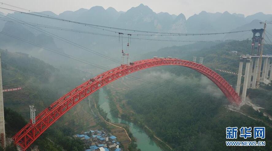 9月12日使用無人機拍攝的大小井特大橋。目前,橫跨在貴州省羅甸縣大井河上的大小井特大橋建設進入沖刺階段。大小井特大橋全長1.5公里,主跨450米,是世界最大跨徑上承式鋼管混凝土拱橋。據了解,該橋是平塘至羅甸高速公路關鍵性工程,對打通貴州“斷頭路”,助推滇黔桂石漠化片區(qū)脫貧攻堅具有重要意義。新華社記者劉續(xù)攝