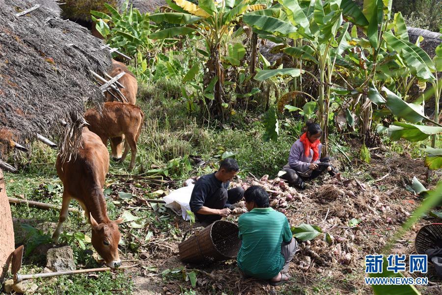 12月3日,在云南省瀾滄拉祜族自治縣南嶺鄉(xiāng)勐炳村龍?zhí)独险?,村民在芭蕉地里做農(nóng)活。 新華社記者張瑞琪攝