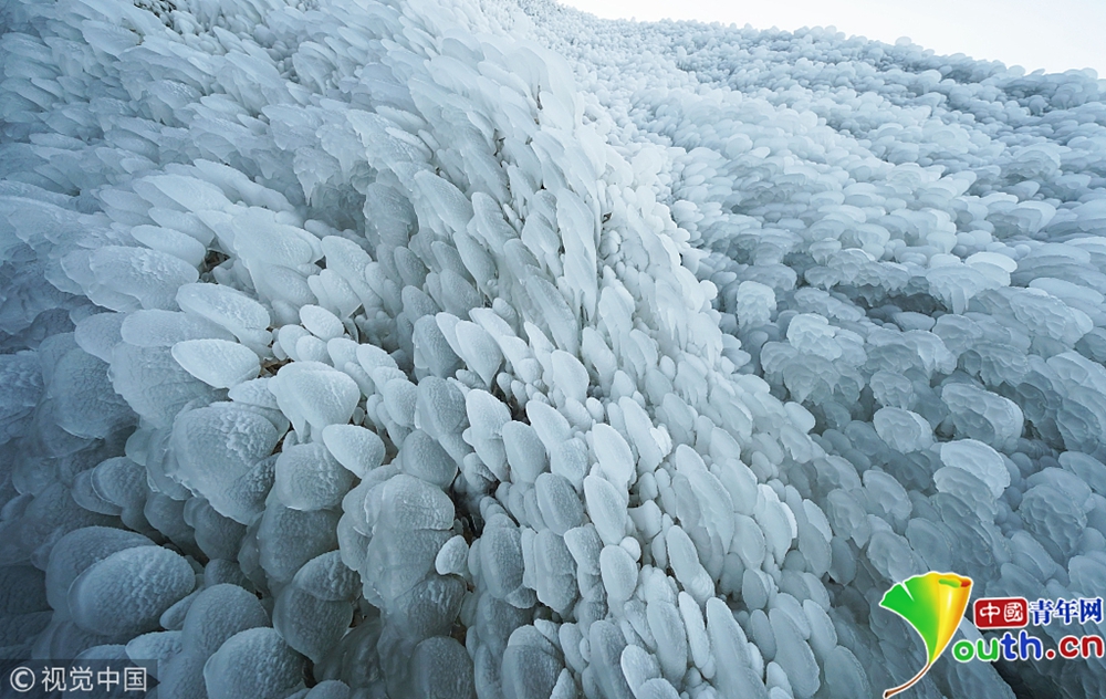 瀑布在零下12攝氏度的氣溫下結冰。圖片來源:視覺中國