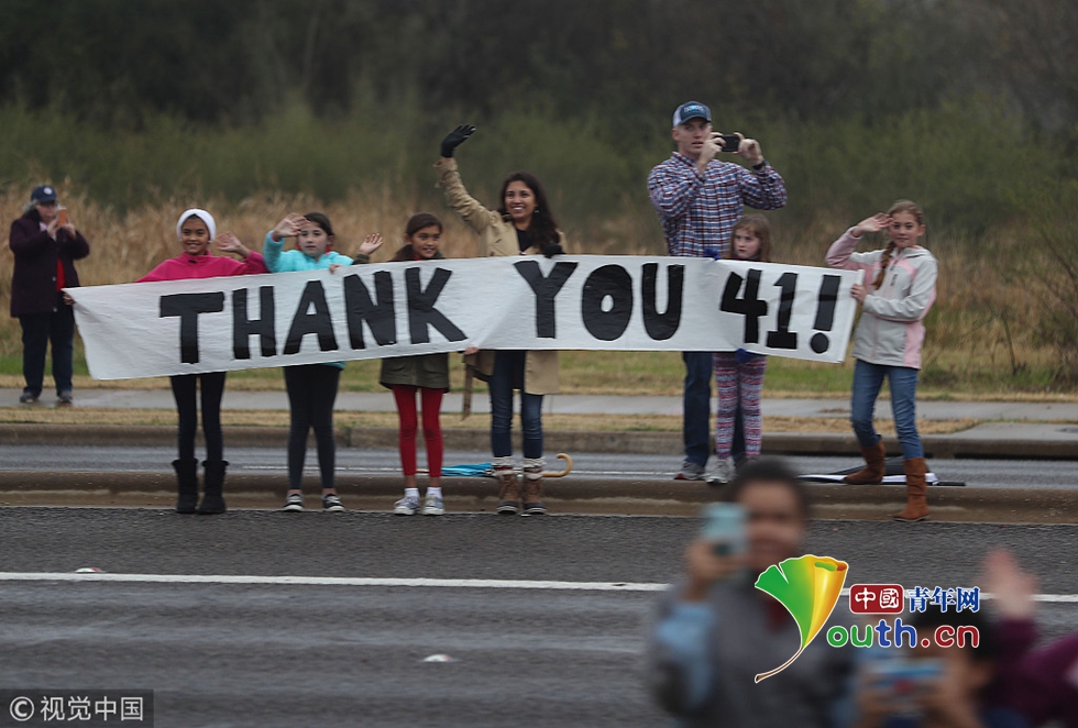 當(dāng)?shù)貢r(shí)間2018年12月6日,美國(guó)德州,美國(guó)前總統(tǒng)老布什將落葬德州農(nóng)機(jī)大學(xué)布什總統(tǒng)圖書(shū)館和博物館后面的布什家族墓地,與他半年前去世的妻子芭芭拉以及早夭的女兒蘿賓葬在一起。當(dāng)天,一輛葬禮專(zhuān)列將載著老布什的棺槨及其親朋,從休斯敦郊區(qū)開(kāi)往老布什的最后安葬之地、德州農(nóng)機(jī)大學(xué)。這列火車(chē)的第六節(jié)車(chē)廂側(cè)面是透明的,人們可以在鐵軌旁看到老布什蓋著國(guó)旗的靈樞。圖片作者:Joe Raedle/視覺(jué)中國(guó)