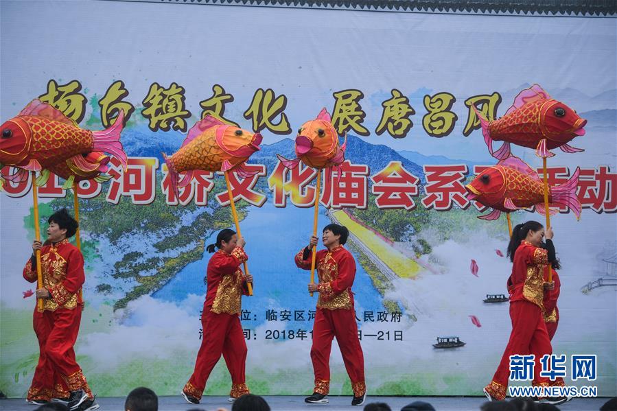 當(dāng)日,浙江省杭州市臨安區(qū)河橋鎮(zhèn)舉辦一場集傳統(tǒng)文化展示、民俗表演、美食品鑒等于一體的傳統(tǒng)廟會,吸引了眾多游客和當(dāng)?shù)鼐用袂皝砀惺軣狒[氣氛。
