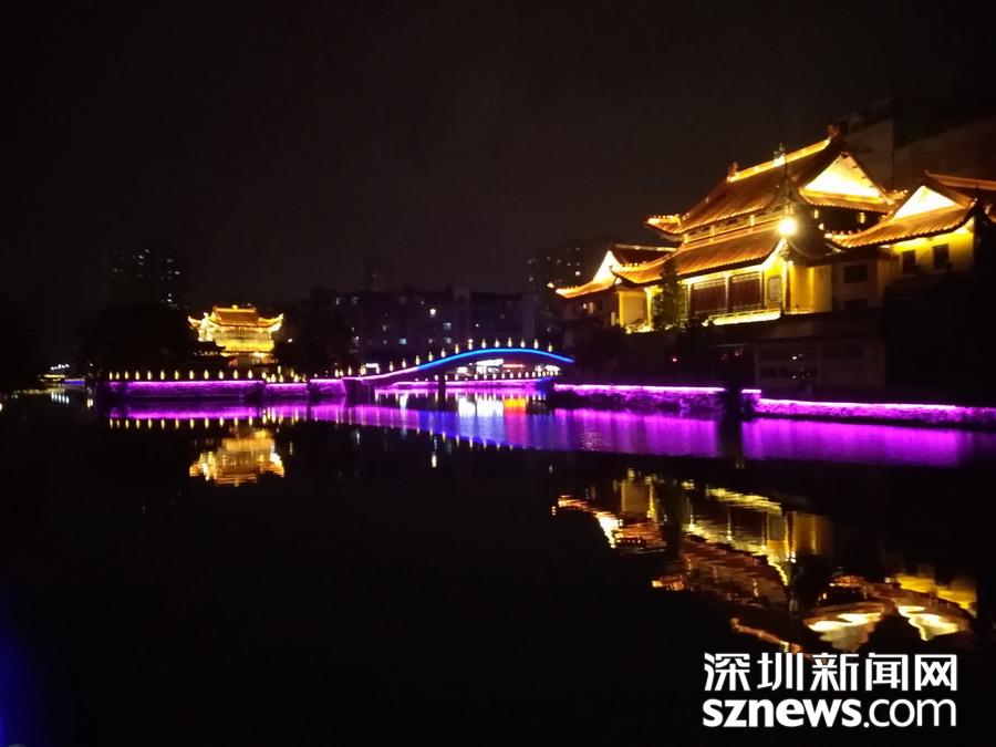 百里塘河穿市而過 ,燈光水光,相映成趣。 吳超攝