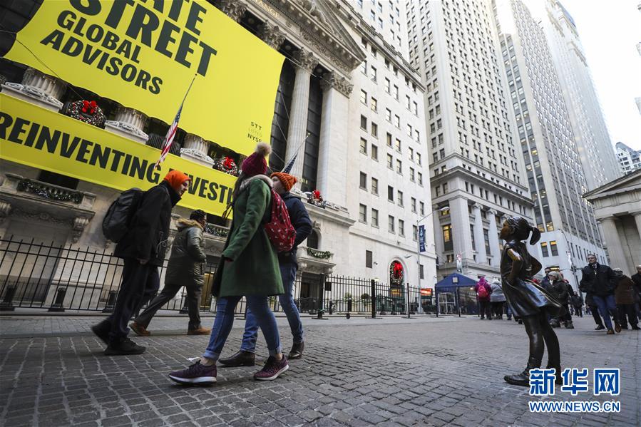 這是12月10日在美國(guó)紐約證券交易所前拍攝的“無(wú)畏女孩”銅像。 新華社記者 王迎 攝
