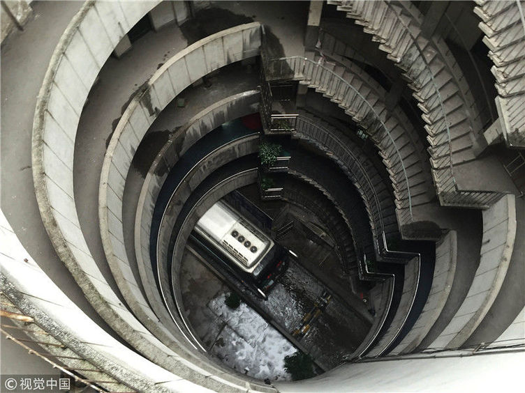 2018年12月6日,重慶江北紅旗河溝汽車站內(nèi),有一棟獨(dú)特的八層圓環(huán)狀建筑,底層每天有不少進(jìn)出站的客車通行。