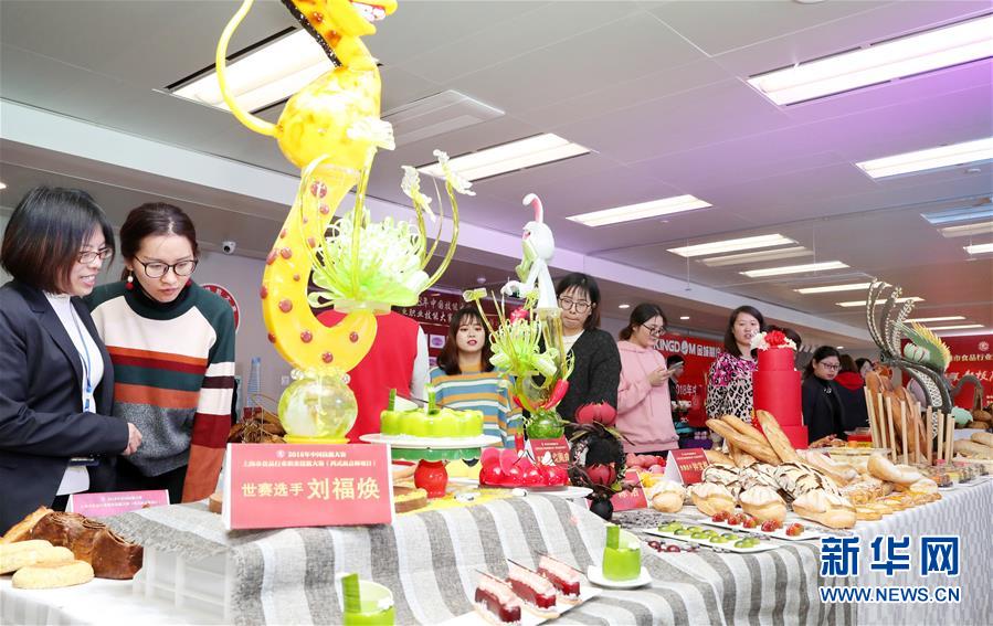 12月13日,參觀者在烘焙和糖藝成品展示現(xiàn)場參觀。 當(dāng)日,2018年中國技能大賽——上海市食品行業(yè)職業(yè)技能競賽(西式面點師項目)在上海環(huán)球港舉行。活動分為競賽和展示兩部分,近400名選手參加競賽部分比拼,最終進入決賽的25名選手的作品在現(xiàn)場進行展示評比。 新華社記者 方喆 攝
