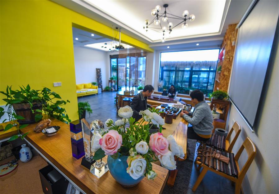 12月16日,“迷嶼海”民宿女主人張馨予在民宿大堂忙碌。該民宿臨海而建,環(huán)境優(yōu)美,吸引很多游客前來休閑住宿。 新華社記者 徐昱 攝