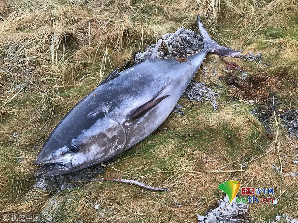 當(dāng)?shù)貢r(shí)間2018年12月16日,英國蘇格蘭海灘,一條兩米長的藍(lán)鰭金槍魚在海灘上被發(fā)現(xiàn),據(jù)悉是由于狂風(fēng)暴雨導(dǎo)致誤入海灘并擱淺死亡。