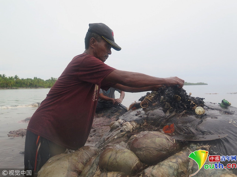 擱淺鯨的肚子里滿是塑料垃圾。