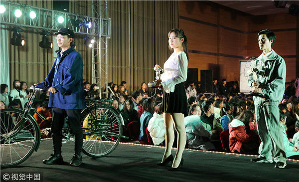 2018年12月17日晚,江蘇南通大學(xué)紡織服裝學(xué)院慶祝改革開放40周年首屆非專業(yè)新生服飾秀精彩上演,41位模特身著極具年代感的服裝,展示了55套穿搭造型,演繹了40年來(lái)不同年代的衣著風(fēng)采。