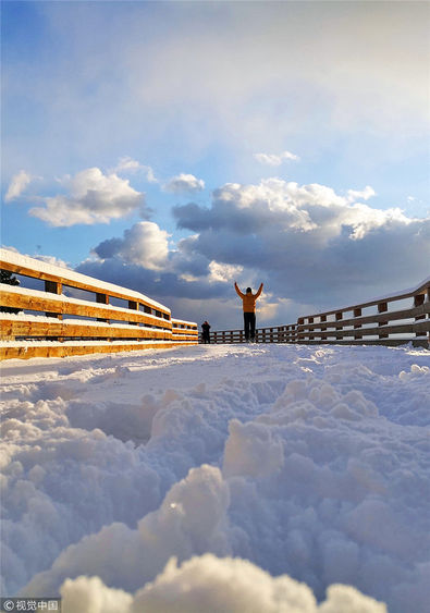 山東煙臺(tái)迎來初雪 獨(dú)特的海濱雪景美若童話
