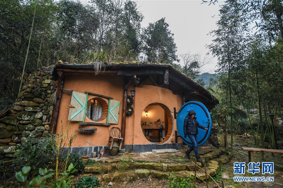 這是12月19日拍攝的民宿“僻地寒樓”的一間特色石頭屋。該民宿共有7幢風(fēng)格各異的小屋分布在山坡上,頗具特色。河橋鎮(zhèn)青年張雁辭去了上海的工作,回到家鄉(xiāng)開(kāi)辦了這家民宿。 新華社記者 徐昱 攝