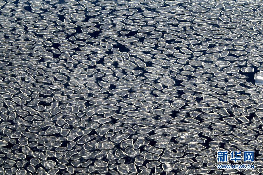 這是11月30日拍攝的普里茲灣海域的荷葉冰。 新華社記者 劉詩平 攝