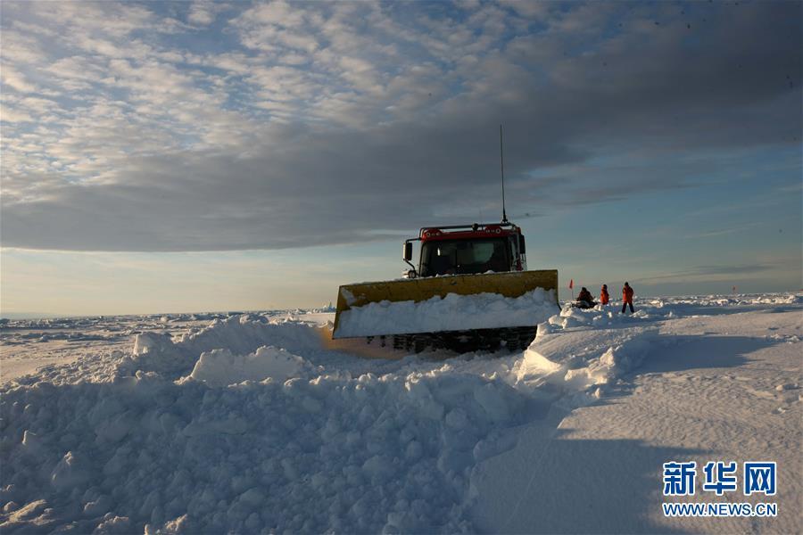 修路小組成員用雪地車裝備的鏟斗推平積雪(12月1日攝)。 搭載中國(guó)第35次南極科考隊(duì)的“雪龍”號(hào)極地考察船日前到達(dá)距離中山站44公里處的陸緣冰區(qū),準(zhǔn)備迎來本次南極科考首場(chǎng)攻堅(jiān)戰(zhàn)——物資卸運(yùn)。一支探冰小組隨即展開海冰探路,以期盡快打通從“雪龍”號(hào)到中山站的冰上運(yùn)輸線,盡早啟動(dòng)冰上運(yùn)貨。 新華社記者 劉詩平 攝