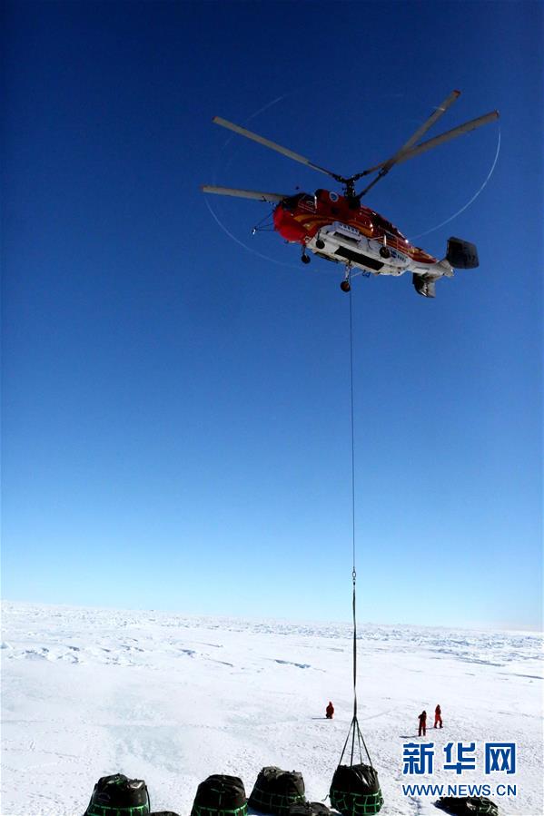 從11月30日開始,考察隊(duì)成功將1605噸物資由“雪龍”號(hào)運(yùn)至南極中山站和內(nèi)陸考察出發(fā)基地,冰上運(yùn)輸和直升機(jī)吊運(yùn)分別為951噸和654噸。