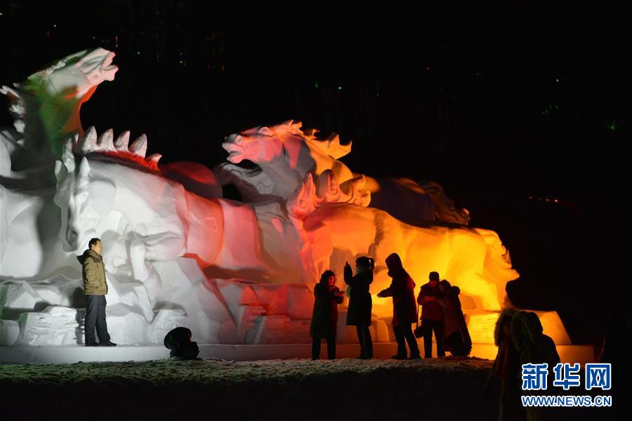 12月21日,游客在冰雪節(jié)開(kāi)幕式上參觀(guān)雪雕。