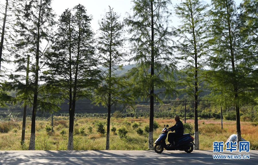 舒港發(fā)騎電動(dòng)車到田里干農(nóng)活。他家種有楊梅和西洋參等農(nóng)作物(10月27日攝)。
