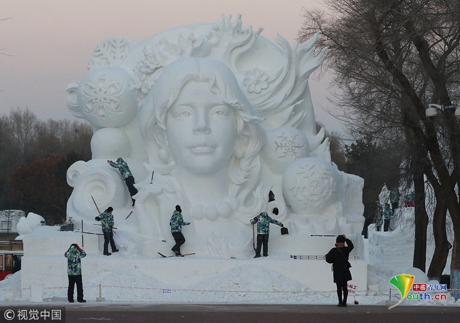 雪博會(huì)百米主塑露“芳容”