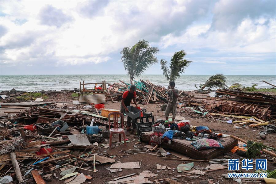 12月24日,受災民眾在印尼萬丹省海嘯災區(qū)進行清理工作。 印度尼西亞抗災署發(fā)言人24日說,印尼西部巽他海峽海嘯死亡人數(shù)已經(jīng)上升至373人。 新華社記者 張可任 攝