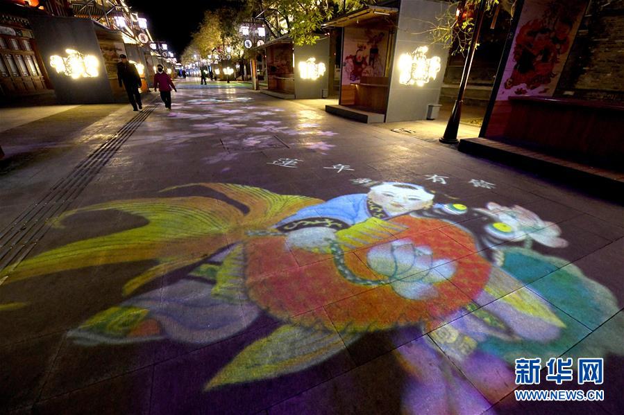 楊柳青年畫(huà)主題燈光布滿(mǎn)在天津楊柳青古鎮(zhèn)步行街上(12月4日攝)。 運(yùn)河穿城過(guò),古鎮(zhèn)草色新,千年畫(huà)鄉(xiāng)楊柳青自傳統(tǒng)中浸潤(rùn)出與眾不同的顏色。40年斗轉(zhuǎn)星移,這個(gè)沉淀千年的小鎮(zhèn),用別樣的風(fēng)姿講述了一個(gè)歷史與現(xiàn)在碰撞而出的改革“新”故事。 新華社記者岳月偉攝