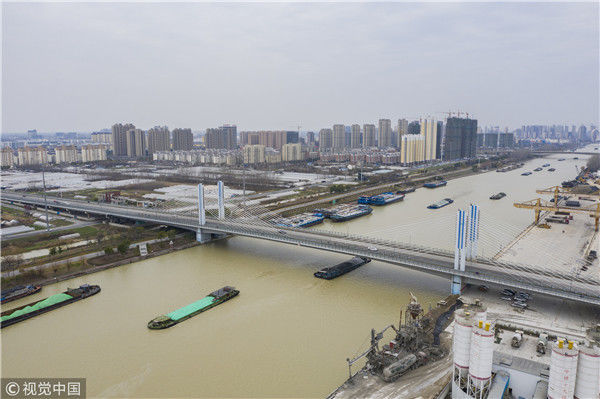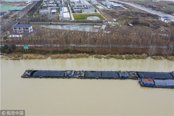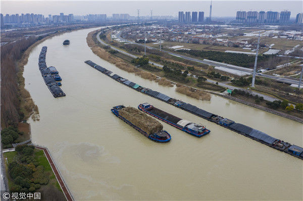 2018年12月27日,江蘇淮安,航拍京杭大運(yùn)河淮安段冬日景色。吳揚(yáng)/視覺中國