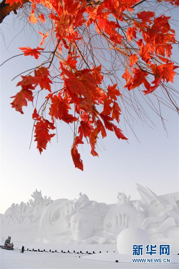 當(dāng)日,第31屆哈爾濱太陽島國際雪雕藝術(shù)博覽會(huì)大型主塑《星河之旅》落成迎客?!缎呛又谩纷髌房傞L度106米,高32米,寬20米,用雪量達(dá)4萬立方米。