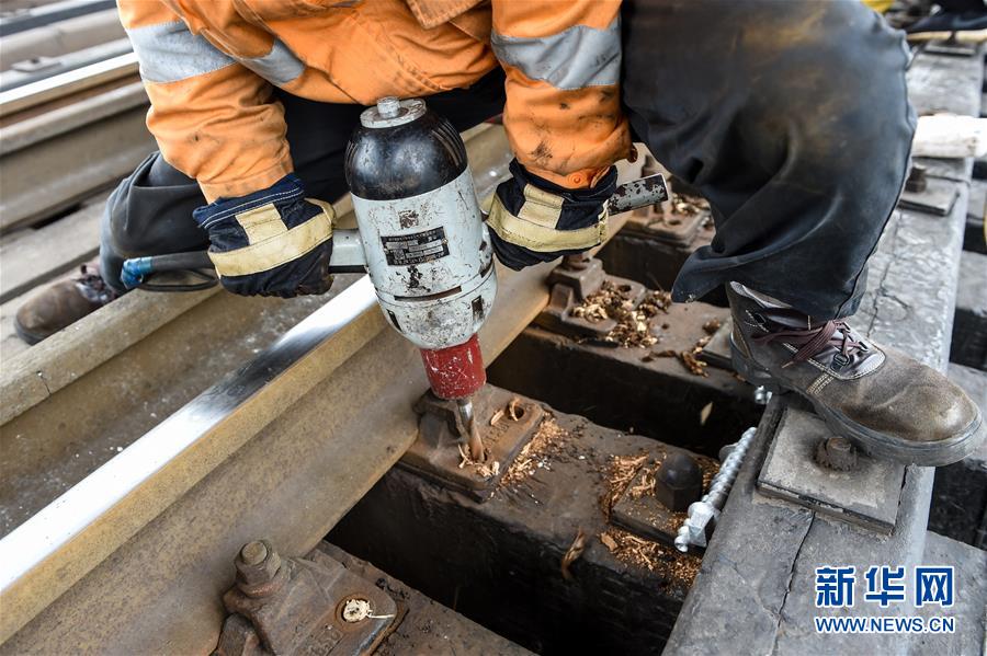 一名線路工在進(jìn)行電鉆改眼作業(yè)(12月27日攝)。