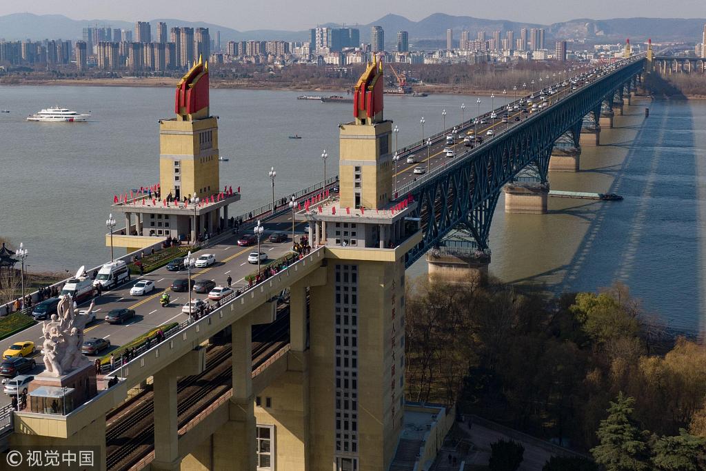 2018年12月29日,江蘇省南京市,中午12點,維修改造后的南京長江大橋全線恢復(fù)通車。2018年12月29日還是南京長江大橋公路橋建成通車50周年紀(jì)念日。