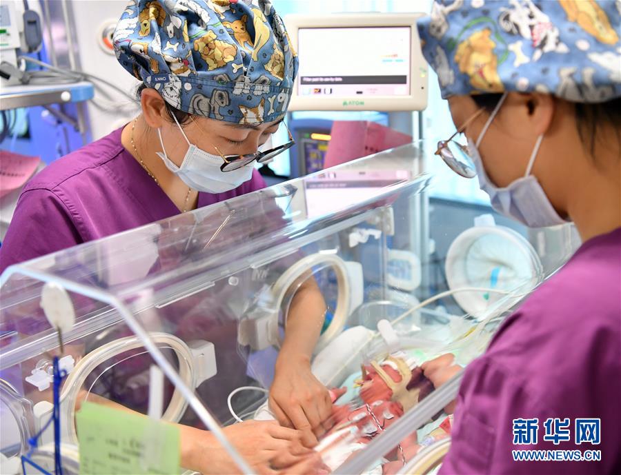 12月30日,山西省兒童醫(yī)院新生兒重癥監(jiān)護(hù)室的護(hù)士在為新生兒做護(hù)理。新華社記者曹陽攝