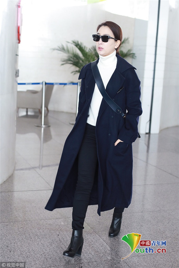 2019年1月7日,北京,馬蘇現(xiàn)身機(jī)場(chǎng)。她身穿黑色到腳大衣霸氣外露,架黑超涂紅唇似帥氣“女特工”。