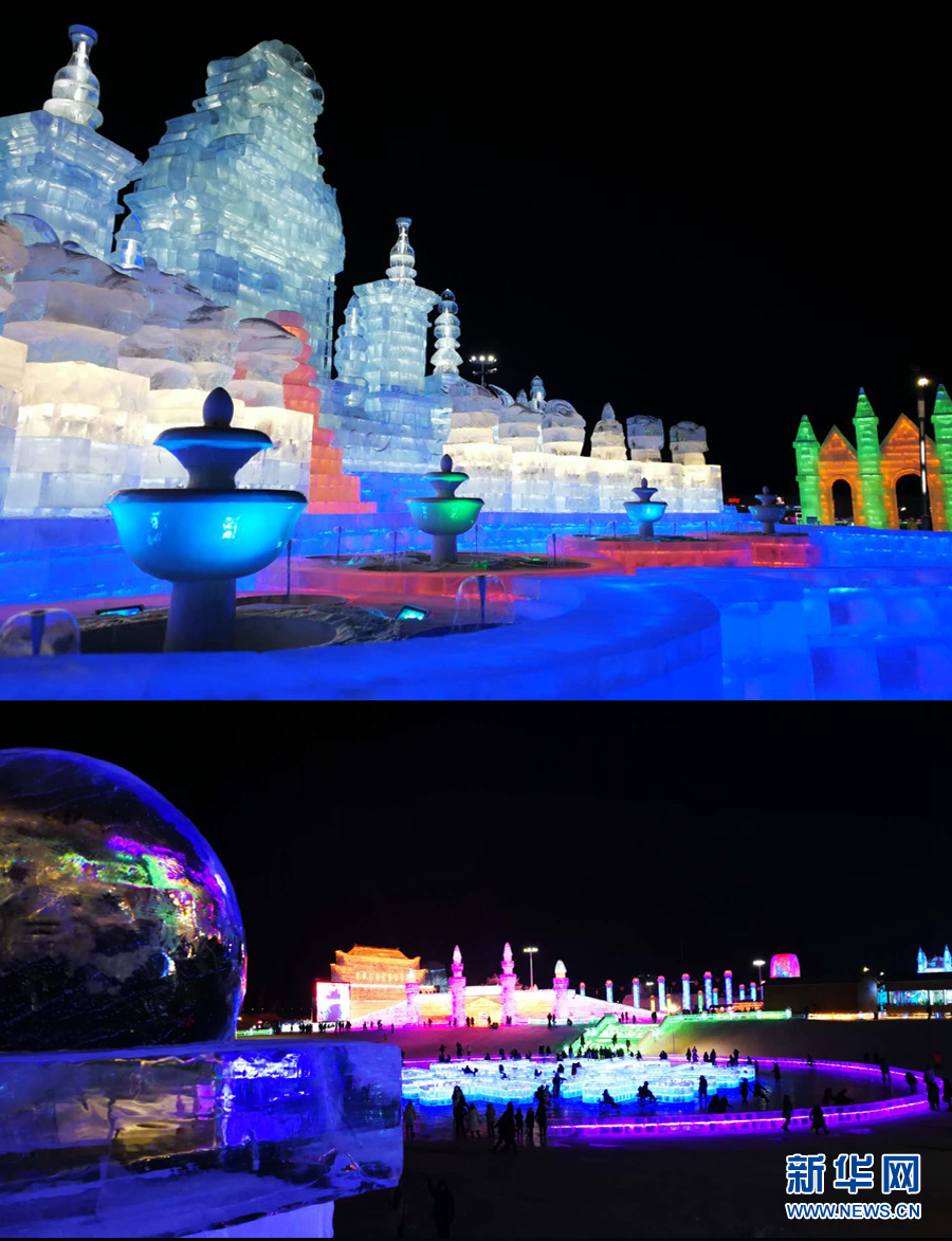 1月5日拍攝的冰雪大世界夜景 新華網(wǎng)記者 張明宇 攝