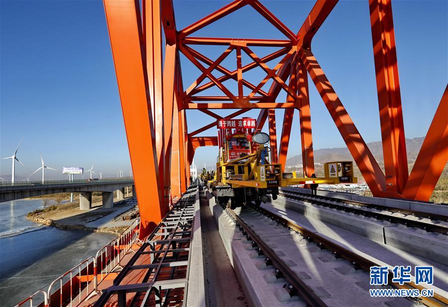 1月13日,中鐵三局的工人在京張高鐵官廳水庫特大橋進(jìn)行鋪軌作業(yè)。 新華社記者 楊世堯 攝