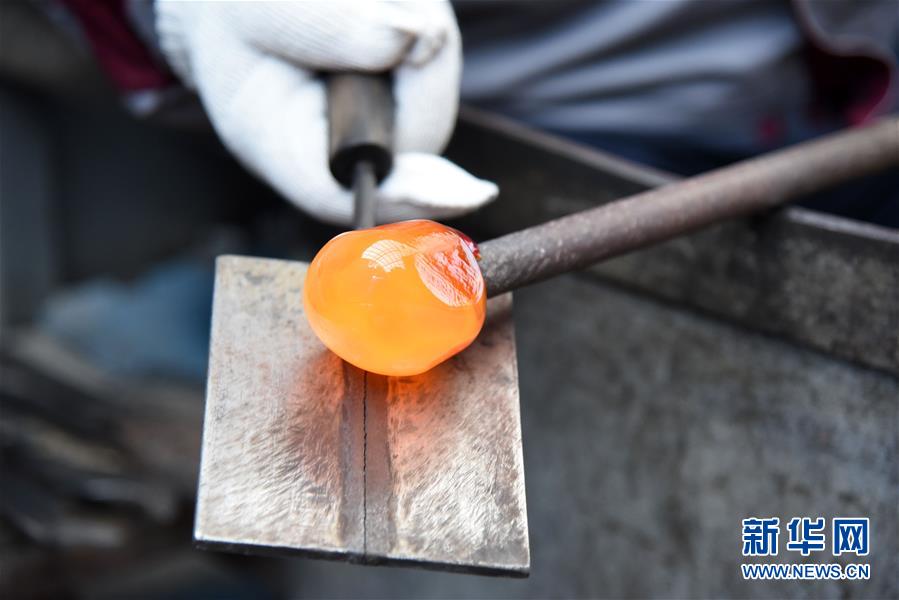 1月12日,孫云毅在制作雞油黃琉璃藝術(shù)品。  新華社記者王凱攝