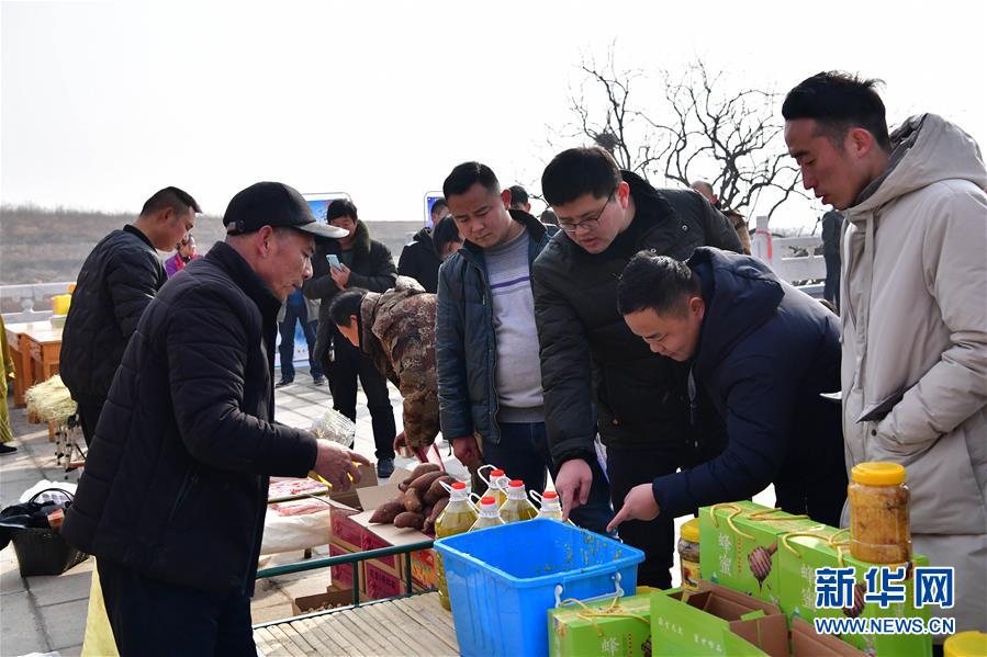 當(dāng)日,河南省魯山縣觀音寺鄉(xiāng)西桐樹莊村土特產(chǎn)年貨展銷活動在河南魯山阿婆寨風(fēng)景區(qū)門口舉行。近年來,依托鄉(xiāng)村旅游的不斷發(fā)展,不少貧困山村特產(chǎn)走出大山。