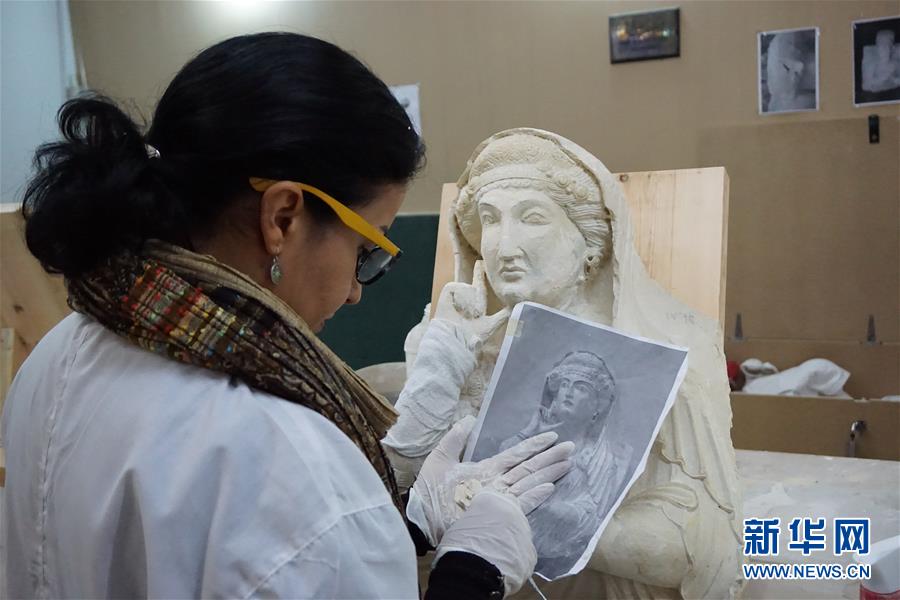 12月5日,在敘利亞首都大馬士革,文物修復小組成員在國家博物館內(nèi)修復來自巴爾米拉的受損雕像。 在敘利亞國家博物館展廳一角,文物修復師赫芭·朱馬正給一座受損的雕像“整容”。“我對這座雕像有特殊的感情,‘她’就像我的家人一樣。”朱馬說,包括這座雕像在內(nèi),館內(nèi)大部分受損文物都來自她的家鄉(xiāng)巴爾米拉。這座敘利亞古城有2000多年的歷史,是一座古羅馬風格的歷史遺址,1980年被聯(lián)合國教科文組織列入世界文化遺產(chǎn)名錄。過去數(shù)年間,極端組織“伊斯蘭國”先后兩次攻占巴爾米拉,不僅濫殺無辜,還大肆破壞遺跡文物。2017年3月,敘利亞政府軍重奪對巴爾米拉的控制權(quán),劫后余生的文物被分批運到首都大馬士革保存。數(shù)月前,國家博物館組建文物修復小組,朱馬也從巴爾米拉被調(diào)來參與修復工作。受人力、材料和技術(shù)所限,修復工程預(yù)計需要5至8年才能完成。朱馬說,很多雕塑碎成多塊,拼接十分耗時。盡管挑戰(zhàn)重重,但朱馬對修復過程絲毫不馬虎?!摆s緊好起來吧,等修好了,我?guī)銈兓丶?。”她總是如此喃喃而語。 新華社記者汪健攝