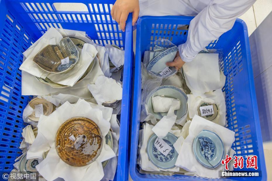 廣東省博物館文物保護科技中心出水文物保護實驗室里,修復后的出水瓷器。譚慶駒 攝 圖片來源:視覺中國