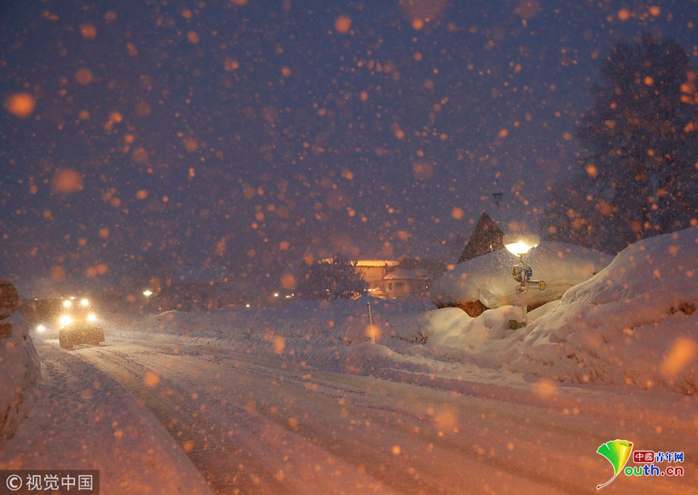 德國(guó)多地大雪紛飛 火車被困半路進(jìn)退不得