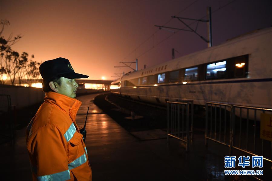 1月29日,王瑞在等待接車。新華社記者劉軍喜攝