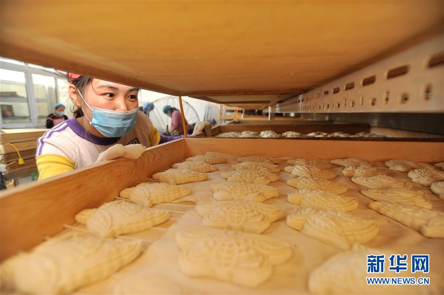 1月31日,河北黃驊市一家面花作坊的工人在查看面花。 河北黃驊市有著過年蒸面花的習(xí)俗。春節(jié)前夕,當(dāng)?shù)孛婊ㄖ谱鞴S加班加點(diǎn)制作面花,供應(yīng)春節(jié)市場。 新華社記者牟宇攝