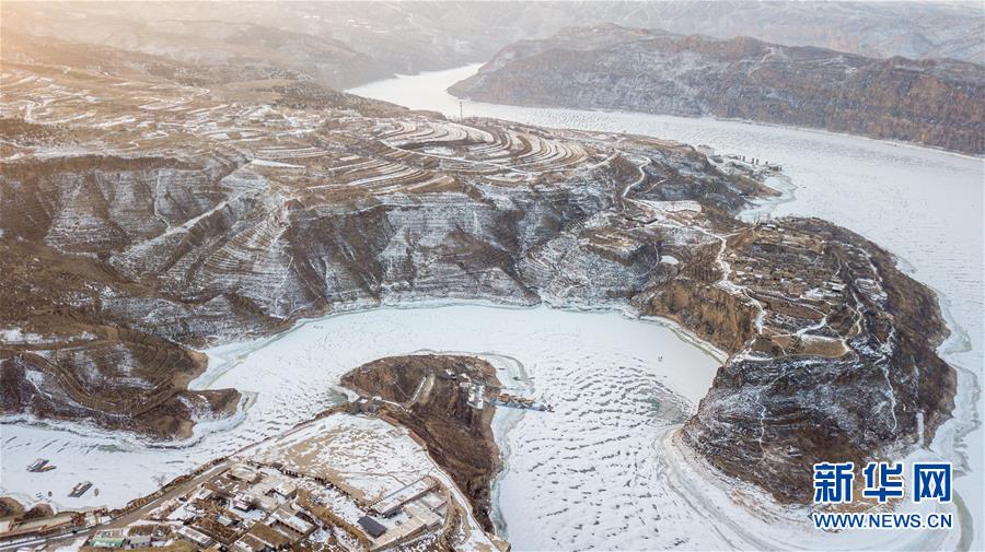 這是2月17日無人機(jī)拍攝的老牛灣雪景。黃河老牛灣位于山西省和內(nèi)蒙古自治區(qū)交界處。