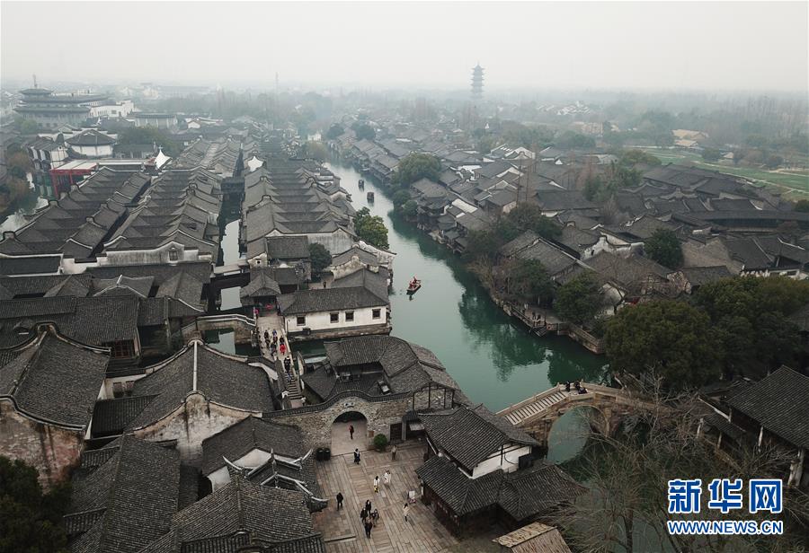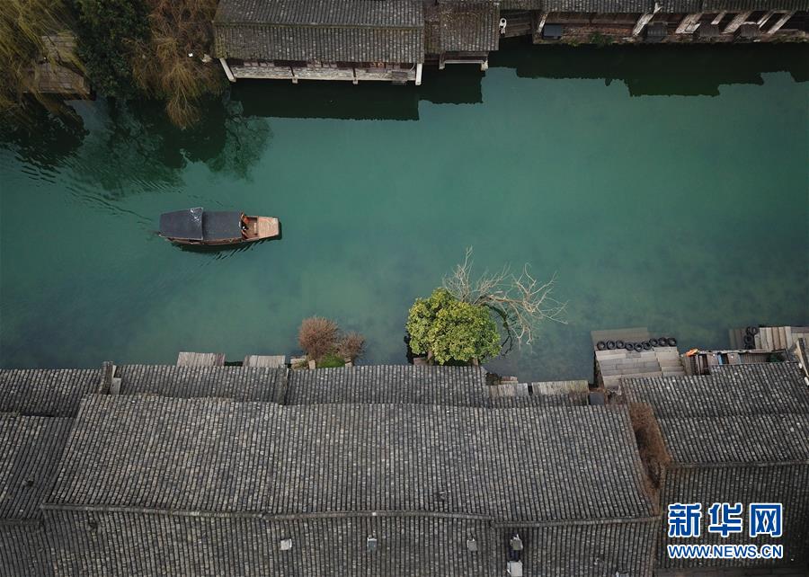 2月25日,烏鎮(zhèn)景區(qū)內(nèi)春意萌動(無人機(jī)拍攝)。 隨著氣溫升高,浙江省桐鄉(xiāng)市烏鎮(zhèn)景區(qū)春意萌動。 新華社記者翁忻旸攝