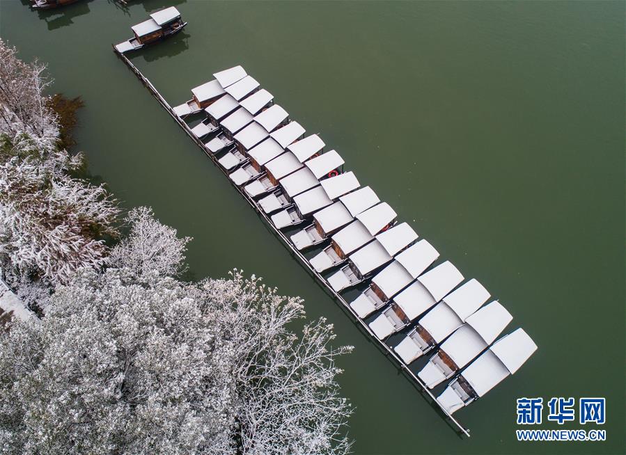 12月9日,游船行駛在烏鎮(zhèn)景區(qū)的河道內(nèi)。 受冷空氣影響,浙江省桐鄉(xiāng)市迎來大范圍降雪,千年古鎮(zhèn)烏鎮(zhèn)被厚厚的白雪覆蓋。小橋流水、白墻黑瓦的江南水鄉(xiāng)古鎮(zhèn),呈現(xiàn)出冬日雪鄉(xiāng)的獨(dú)特韻味,吸引各地游客前來觀賞。 新華社記者 徐昱 攝