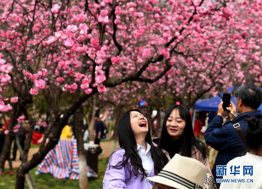 游人在昆明圓通山公園觀賞盛開的櫻花(3月16日攝)。近日,云南省昆明市迎來櫻花盛開的時節(jié)。昆明圓通山公園的數(shù)千株櫻花燦爛綻放,吸引了市民和游客前來觀花賞景。新華社記者藺以光攝