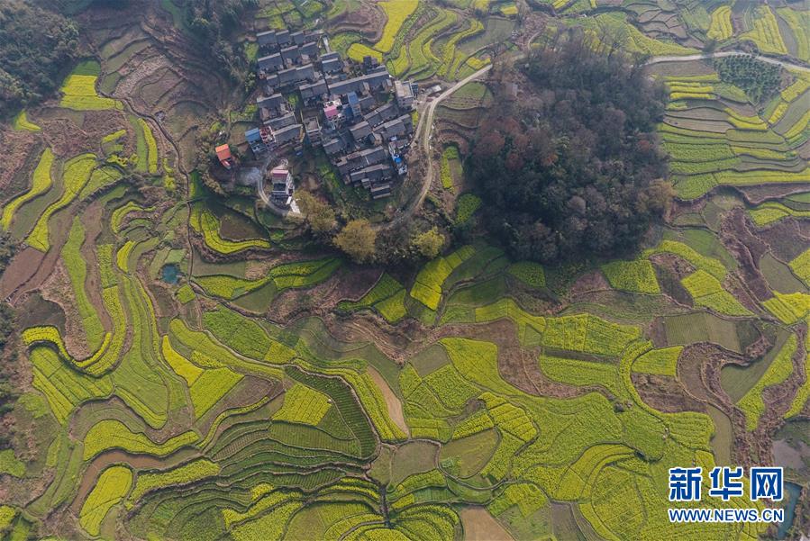 3月20日在貴州錦屏縣新化鄉(xiāng)拍攝的春景(無人機拍攝)。春分將至,貴州各地成片的油菜花漸次綻放,如同金色的地毯鋪上云貴高原。 新華社記者 歐東衢 攝