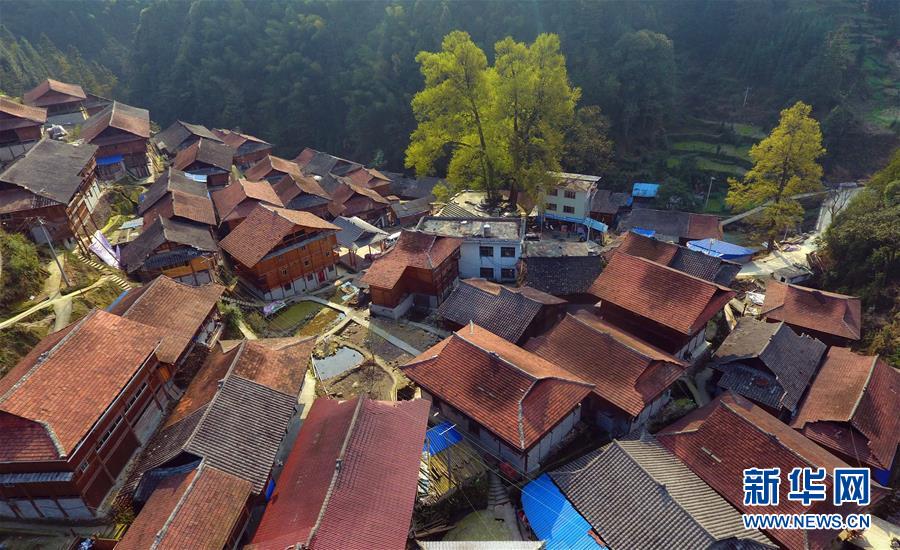 這是黔桂烏英苗寨春色(3月20日無人機(jī)拍攝)。