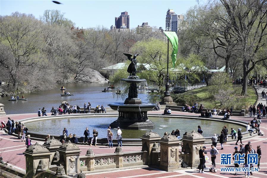 4月16日,人們?cè)诿绹?guó)紐約中央公園游玩。 新華社記者 王迎 攝