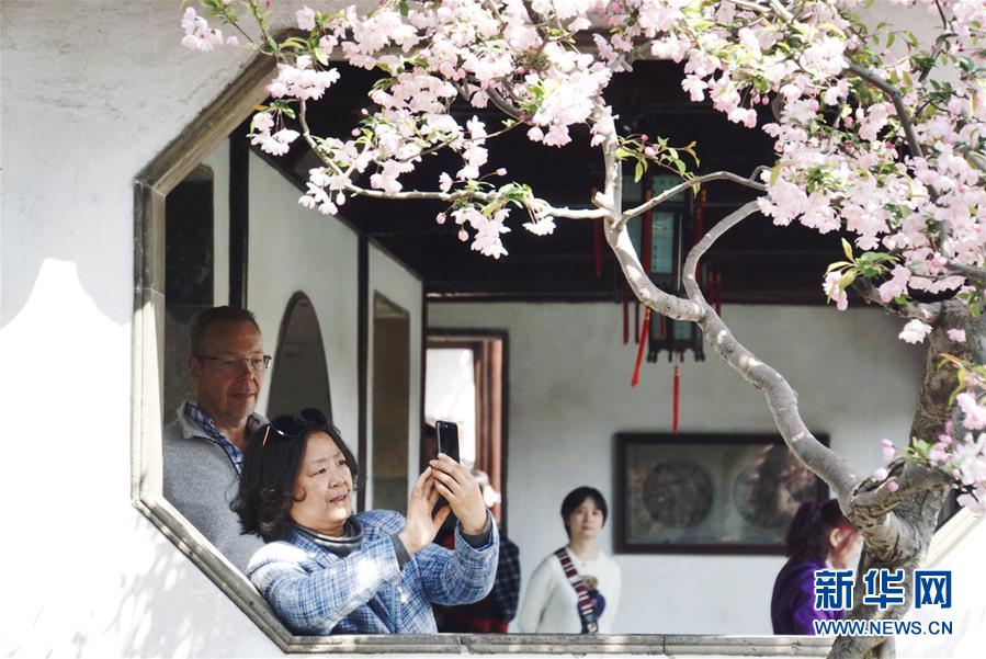 2019年4月1日,游客在中國蘇州網(wǎng)師園內(nèi)拍照。1997年,網(wǎng)師園和拙政園、留園、環(huán)秀山莊被列入聯(lián)合國教科文組織世界文化遺產(chǎn)名單。 新華社記者杜涓涓攝
