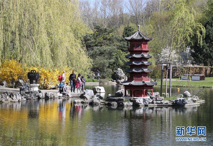 4月17日,在德國首都柏林,游客在“得月園”內(nèi)參觀。“得月園”位于德國柏林東部的世界公園內(nèi),占地約2.7萬平方米,于1997年開工建造,2000年10月正式對外開放,自建成后以其獨特的中式園林魅力成為世界公園眾多不同風格園林中一顆耀眼的明珠。 新華社記者單宇琦攝