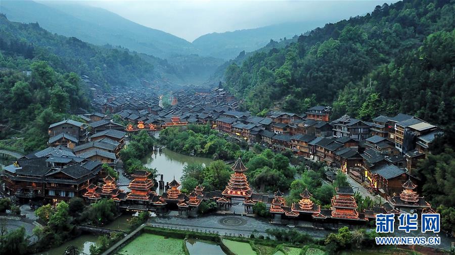 這是貴州省黔東南苗族侗族自治州黎平縣肇興侗寨(4月14日無人機(jī)拍攝)。 新華社記者 歐東衢 攝