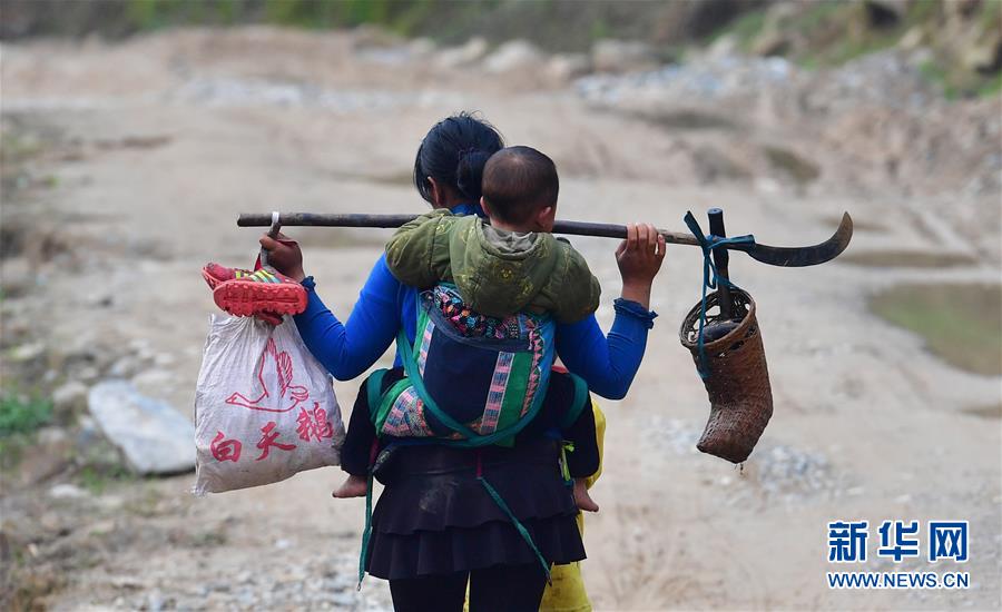 在黔桂烏英苗寨,村民勞作歸來(3月18日攝)。 新華社記者 黃孝邦 攝