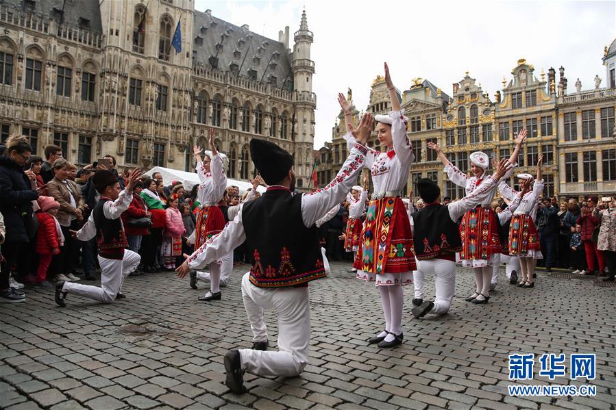 4月28日,在比利時布魯塞爾大廣場,演員表演保加利亞的民族舞蹈。 當日,來自歐洲多個國家的表演者在比利時布魯塞爾大廣場載歌載舞,慶祝為期五天的2019年巴爾干文化藝術(shù)節(jié)圓滿落幕。該文化藝術(shù)節(jié)旨在用音樂、舞蹈、文學、街頭藝術(shù)等方式向公眾展現(xiàn)東南歐巴爾干半島地區(qū)的民族文化風情。 新華社記者鄭煥松攝